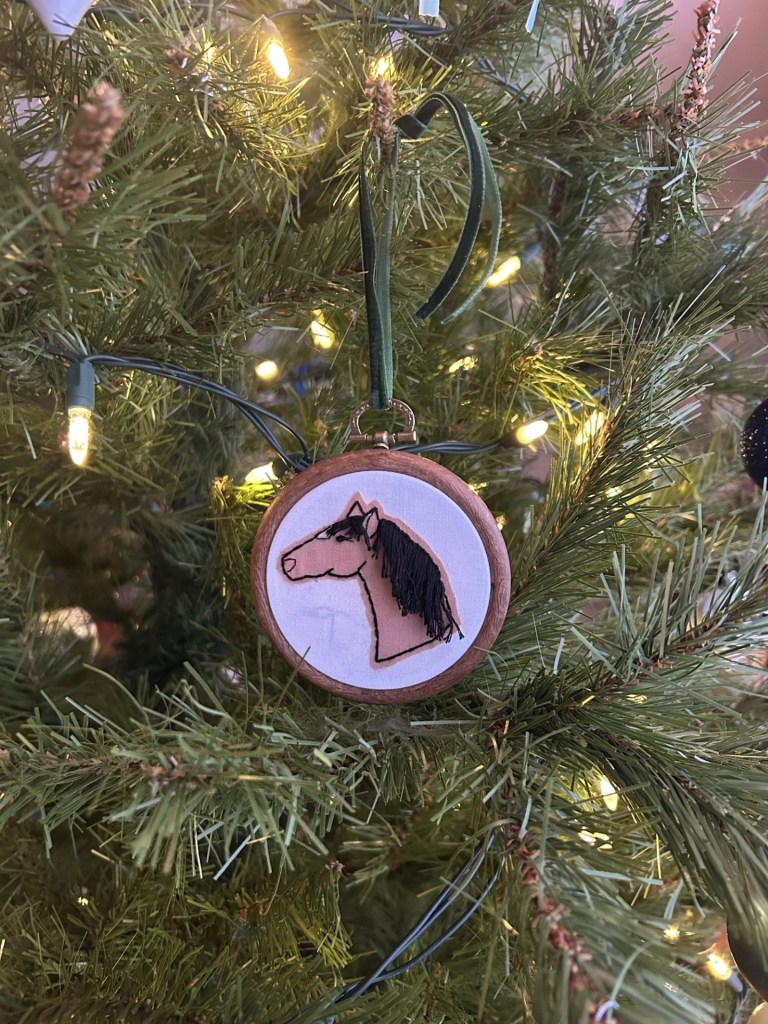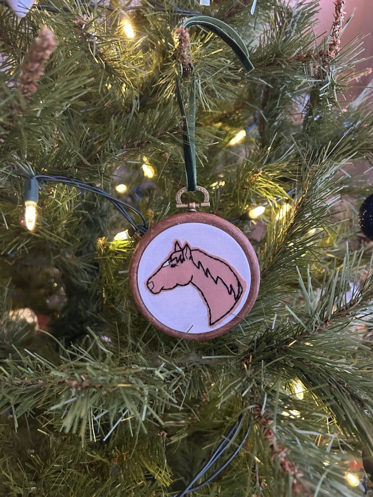 Step 5: Outline Marigold using a backstitch. Do not do the mane portion if you are making the intermediate version. If you are doing the beginner version, be sure to backstitch her mane at this point.